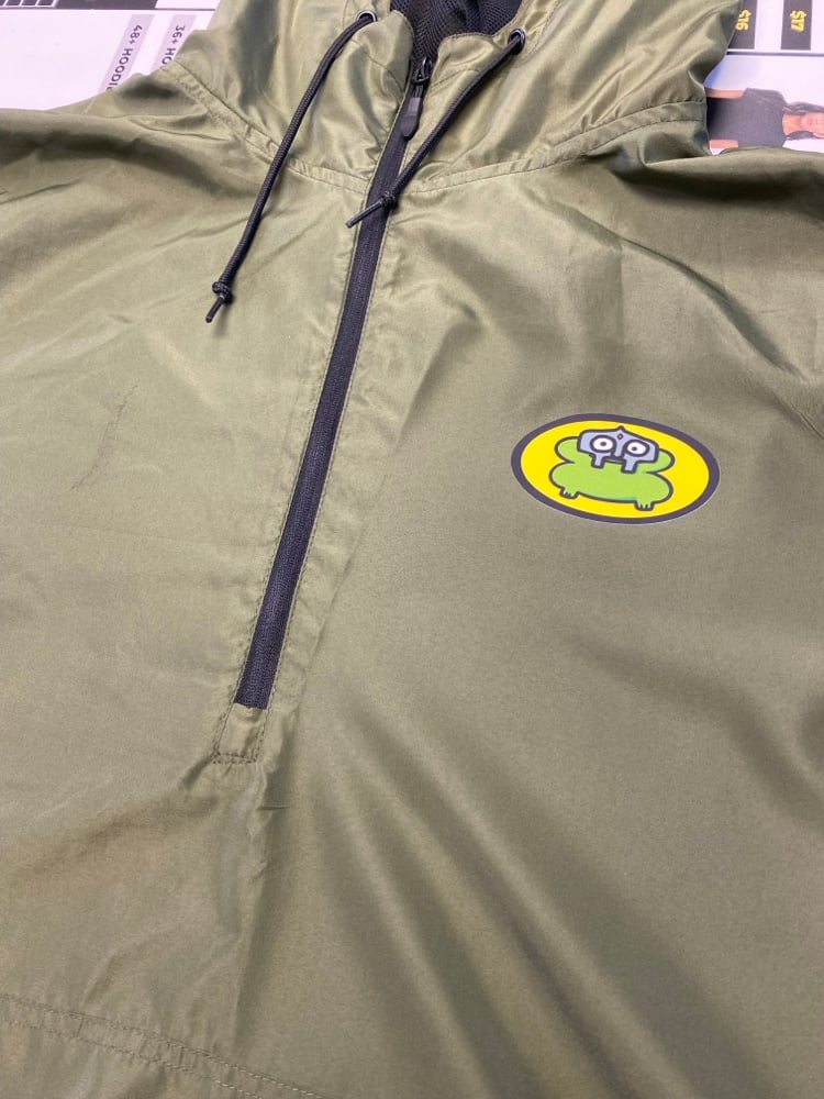 100% polyester windbreaker, quarter zip with DTF printed graphic, nice and lightweight, very breathable!